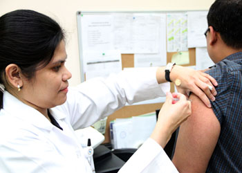 أطلقت إدارة مكافحة العدوى وبالتعاون مع إدارة الصيدلة في مستشفى الملك عبدالعزيز التابع للشؤون الصحية بوزارة الحرس الوطني بالأحساء، فعاليات التطعيم ضد الإنفلونزا، وذلك من خلال الوصول إلى الموظفين في مكاتبهم وإداراتهم، وإعطائهم التطعيمات اللازمة، وأكد المدير الإقليمي التنفيذي للشؤون الصحية بوزارة الحرس الوطني بالقطاع الشرقي الدكتور أحمد العرفج أن "هذا النشاط والذي يقام للمرة الأولى، يهدف إلى رفع مستوى الوعي بضرورة أخذ اللقاحات اللازمة لمكافحة أعراض الإنفلونزا".