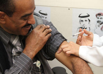 وقال الدكتور الجمال "أعطي الموظفون لقاح ضد ثلاث أنواع من الإنفلونزا ومنها انفلونزا الخنازير، وفكرتنا إذا قمنا بحماية الموظفين نكون بذلك حققنا الحماية المطلوبة للمرضى"، مضيفاً "يجيب الموظف على ورقة استبانة تحوي أسئلة عن صحته العامة ومن ضمنها عدم وجود حساسية لديه للبيض، أو يكون مريضاً بالانفلونزا، أو يستخدم مضادات حيوية حالياً، ونعتزم التوجه يوم الخميس المقبل إلى حضانة الأطفال التابعة للمستشفى لإعطاء الأطفال والموظفين هناك اللقاح المطلوب".