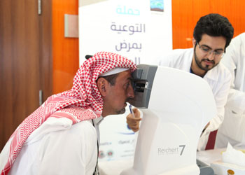وأوضح الدكتور سعيد الغامدي استشاري العيون أن الاسبوع العالمي للجلوكوما يقام كل عام في شهر مارس على مستوى العالم للتوعية بالمرض وهو مرض ارتفاع ضغط العين والذي يسبب تلفاً في أنسجة العصب البصري و يتبعه تدريجيا فقد أجزاء من المجال البصري للرؤية و فقدان الرؤية تماماً إذا لم يعالج، و أشار إلى أن مرض الماء الأزرق هو عدم التوازن بين كمية السائل الذي تفرزه العين وبين قدرة قنوات العين الخاصة بتصريف هذا السائل فينتج عن ذلك تجمع السائل داخل العين مما يؤدي إلى الضغط على أنسجة العين الداخلية بما فيها العصب البصري مما يؤدي في النهاية الى تلفه، كذلك بين أن الجلوكوما ثالث الأسباب الرئيسية لفقدان البصر بالمملكة وتكمن خطورته في أنه يسبب فقدانا دائما للبصر بشكل تدريجي اذا لم يكتشف ويعالج في بدايته.