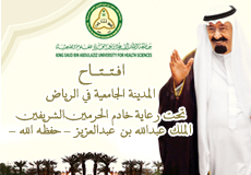 تحت رعاية خادم الحرمين الشريفين الملك عبدالله بن عبدالعزيز – حفظه الله – يفتتح اليوم "الثلاثاء" صاحب السمو الملكي الأمير متعب بن عبدالله بن عبدالعزيز وزير الدولة عضو مجلس الوزراء رئيس الحرس الوطني، المدينة الجامعية الجديدة لجامعة الملك سعود بن عبدالعزيز للعلوم الصحية بالرياض، ويرعى حفل تخريج الدفعة العاشرة من طلبتها.