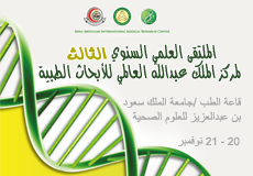 تنظم الشؤون الصحية بالحرس الوطني , ممثلة بمركز الملك عبدالله العالمي للأبحاث الطبية فعاليات (يوم البحث العلمي) الذي يقام للعام الثالث على التوالي تحت عنوان "بحوثنا الصحية واقع وتطلعات" وذلك في قاعة الطب بجامعة الملك سعود بن عبدالعزيز للعلوم الصحية يومي (الثلاثاء – الإربعاء) 20-21/ 11 / 2012م حيث