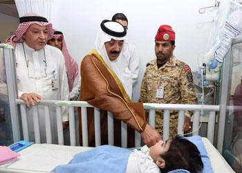 وفي ختام الزيارة قام سموه بجولة على مرافق المستشفى شملت أقسام الجراحة، والباطنة، والعظام، وقسم الأطفال، كما زار سموه عدداً من المرضى المنومين داخل غرفهم بالمستشفى، واستمع لشرح عن الحالة الطبية لكلٍ منهم، سائلاً الله العلي القدير أن يمنّ عليهم بعاجل الشفاء.