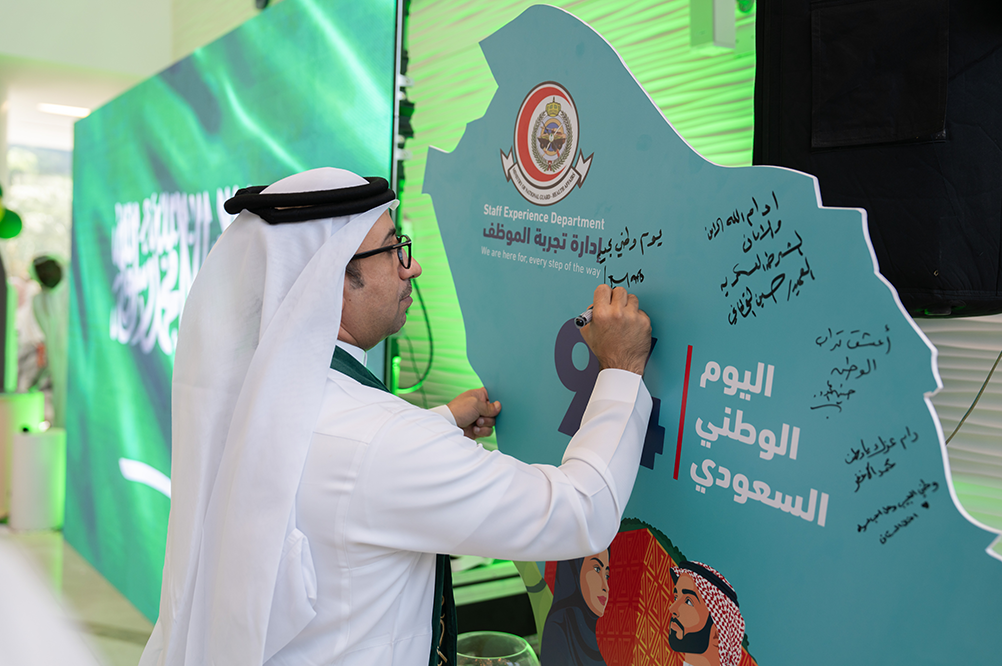 تحت رعاية معالي المدير العام التنفيذي للشؤون الصحية بوزارة الحرس الوطني الدكتور بندر القناوي، احتفلت الشؤون الصحية بوزارة الحرس الوطني صباح يوم الثلاثاء الموافق 25 سبتمبر 2024م باليوم الوطني السعودي الـ 94 تحت شعار "نحلم ونحقق". تم الاحتفال في جميع المناطق ممثلة بمدينة الملك عبدالعزيز الطبية بالرياض، مدينة الملك عبدالعزيز الطبية بجدة، مستشفى الملك عبدالعزيز بالأحساء، مستشفى الإمام عبدالرحمن آل فيصل بالدمام، ومستشفى الأمير محمد بن عبدالعزيز بالمدينة المنورة. وكان ذلك من خلال تنظيم فعاليات مميزة وأنشطة عكست التراث والثقافة السعودية إضافة إلى هدايا رمزية للحضور، كما تم تقديم مجموعة من الأطعمة الشعبية السعودية. أبدى الحضور تفاعلهم وفرحتهم في أجواء يملؤها الفخر والاعتزاز بهذا اليوم مما يعكس مدى التفاف المواطنين حول قيادتهم وحبهم الكبير للوطن واعتزازاهم بمنجزاته واستقراره وأمنه بقيادة خادم الحرمين الشريفين الملك سلمان بن عبدالعزيز، وولي عهده الأمين الأمير محمد بن سلمان، حفظهم الله.