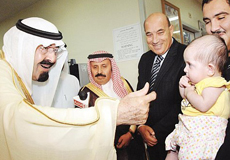ثم قام خادم الحرمين الشريفين بزيارة للتوأم السيامي الأردني محمد وأمجد اللذين أجريت لهما عملية فصل يوم الخميس الماضي وتكللت ولله الحمد بالنجاح بحضور القائم بالأعمال في السفارة الأردنية لدى المملكة الدكتور وليد القزاز. وأطمأن الملك المفدى على صحة الطفلين وقام حفظه الله بأبوة حانية بإعطائهما الرضعة الأولى لهما بعد إجراء العملية متمنياً لهما الشفاء العاجل. بعد ذلك قام الملك عبدالله بزيارة للطفلة السعودية تالين الحربي التي أجريت لها مؤخراً عملية جراحية معقدة ناجحة تمثلت في استئصال معدة غير مخلّقة وإعادة تأهيل الأمعاء والمريء وأعطى بيده الكريمة الرضعة الأولى للطفلة داعياً الله لها بالشفاء والعافية.