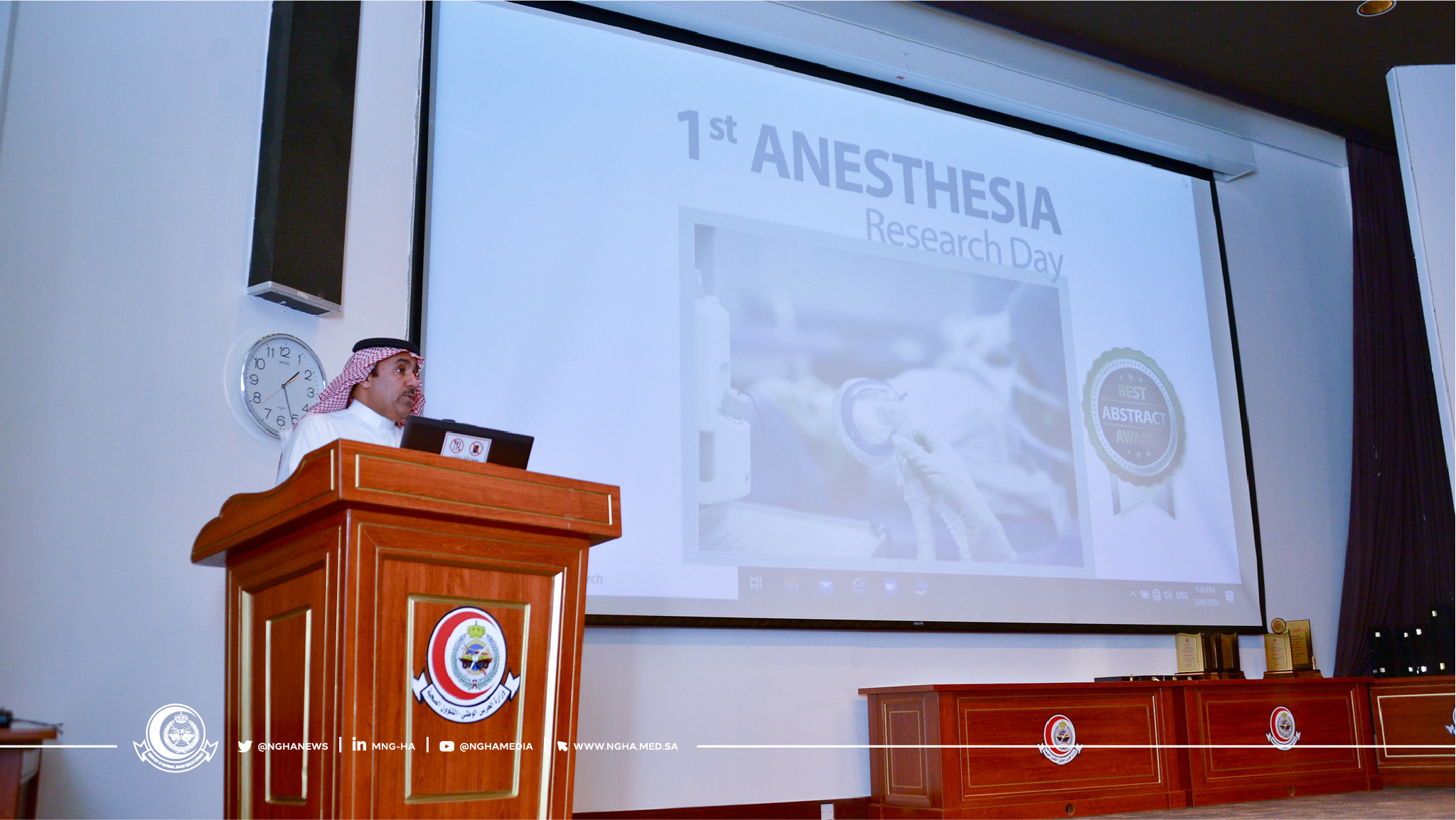 On behalf of His Excellency, the Chief Executive Officer of Ministry of National Guard Health Affairs, Dr. Bandar Al Knawy, the Chief Medical Officer, Dr. Saad Al Mohrij, patronized the celebration of the Anesthesia Department at King Abdulaziz Medical City of the Scientific Day for Anesthesia Research on Thursday, December 8, 2022. The occasion included the latest research developments in the Anesthesiology Department and other research related to innovation in anesthesia practice.