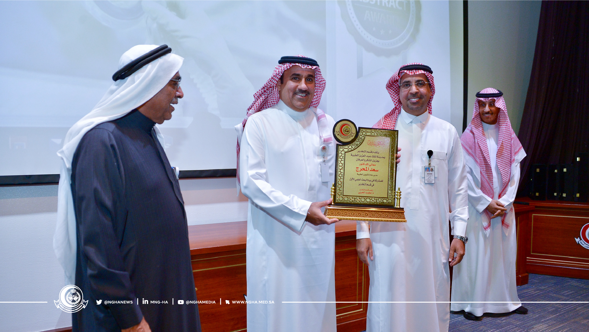 The ceremony began with a lecture by Professor Hamdan Al Jahdali, Head of Internal and Pulmonary Medicine Department, entitled (The research stage from an idea to scientific publication), followed by a lecture by Dr. Muhammad Al Harbi, Head of the Anesthesia Department, entitled (latest four medical research papers) from the Department of Anesthesia dealing with new research presented for the first time and will have a quantum leap in the practice of anesthesia locally and globally.