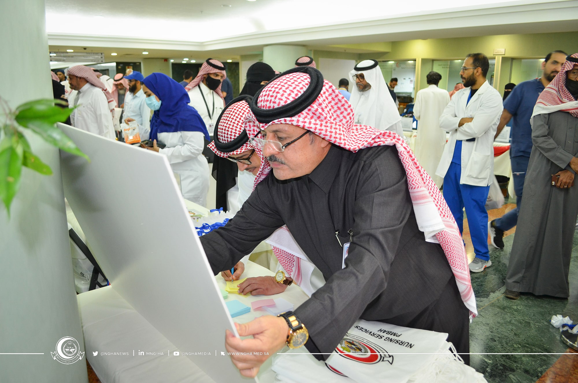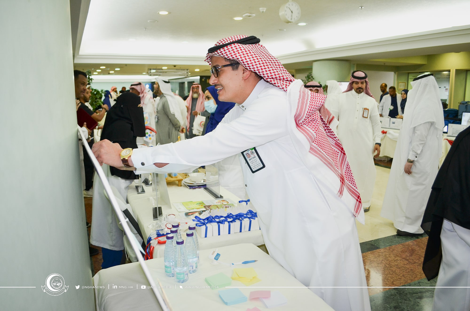 Under the slogan of "Eye on Your Care," Prince Mohammed bin Abdulaziz Hospital for Health Affairs at the Ministry of National Guard in Madinah, represented by the Home Health Care Department and with the participation of several hospital departments, held an awareness event on the Saudi Home Health Care Day on Thursday morning 21/5/1444 AH, 15/12/2022. The event was inaugurated by the Executive Director of Operations, Mr. Mansour Al Askar, and the Executive Director of Medical Services, Dr. Turki Al Wasidi, and in the presence of the Head of the Home Health Care Department at the hospital, Dr. Samia Sabr, and several heads of medical and operational departments at the hospital.