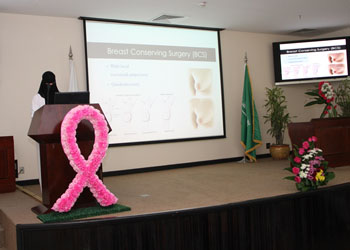 King Abdulaziz Hospital - Al Ahsa held a medical seminar for health workers about the risks of breast cancer and its development, and according to Dr. Ahmad Al Arfaj, the Regional Executive Director of the Ministry of National Guard -Health Affairs in the Eastern Region, the seminar’s goal was to raise the level of awareness about this disease, in addition to following up with the latest developments related to it and assess the extent of the problem in the region.