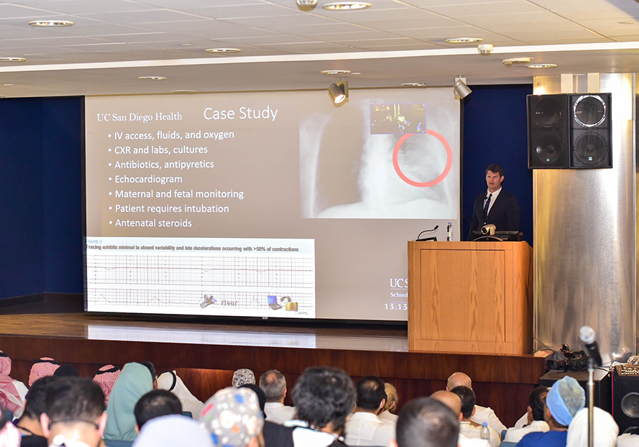 Under the auspice of H.E. The Chief Executive Officer of the Ministry of National Guard Health Affairs Dr. Bandar Al Knawy, the visiting Professor Dr. Scott Alexander Harvey from the University of California, USA, gave a lecture entitled “Two Lives of the Line: Critical Care in Pregnancy"