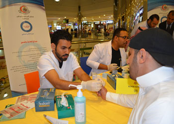 Furthermore, the celebration extended to Al Rashid Mall, where the Nursing Education Department held a large awareness event, as well as offering instant free medical care to the visitors of the mall. The provided care included blood sugar test, blood pressure check and hemoglobin measure, in addition to direct medical consultation conducted by a completed specialized medical team. It is worth mentioning that, a great number of people, adults and young, visited the hospital pavilion, and reacted with sessions of fun and gift distribution