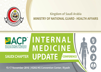 Internal Medicine Department at King Abdulaziz Medical City, Ministry of National Guard – Health Affairs (MNG-HA) and King Saud bin Abdulaziz University for Health Sciences (KSAU-HS) in cooperation with the American College of Physicians (ACP) will host the Internal Medicine Update Conference, Saudi Chapter on Tuesday, the 15th of November, 2016 at King Saud Bin Abdulaziz University for Health Sciences - Convention Center.