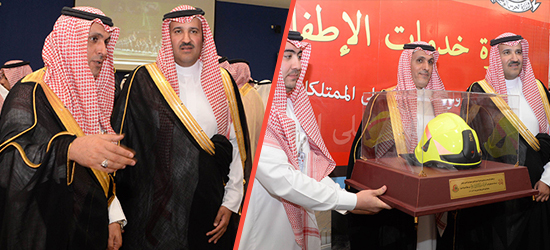 At the end of his highness tour to PMBAH booth, Dr. Al Othman presented an honoring gift to his highness which was the newest type of safety helmets used in civil defense programs bearing the name of his highness.