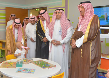 His Highness Prince Saud bin Abdullah bin Thenayan and Her Royal Highness Princess Adila bint Abdullah were received by H.E. Dr. Saad Al Mehrij, Chief Medical Officer of MNG-HA, who delivered a welcome speech during the inauguration ceremony in which he pointed out that this educational program is an achievement that aims to upgrade the healthcare levels provided to our beloved children, while stressing his delight towards such initiatives to further achieve our leaderships vision in providing optimal integrated healthcare services.
