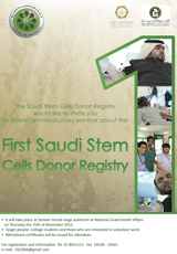 The Saudi Stem Cells Donor Registry would like to invite you to attend an introductory seminar about The First Saudi Stem Cells Donor Registry at Sameer Huraib Large Auditorium at National Guard Health Affairs on Thursday the 15th of November 2012.