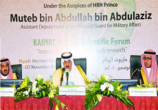 HRH Prince Mitib bin Abdullah, Deputy Commander National Guard for Executive Affairs launched on Tuesday, November 2nd 2010 the opening ceremony for the King Abdullah International Medical Research Center Annual Scientific Forum. The meeting was organized by the National Guard Health Affairs under the title "Improving Health Care through Research" with the attendance of a number of experts, researchers and international and local expert speakers.