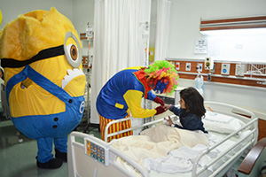 The visit included all PMBAH departments and wards where the group members presented patients with flowers and gifts. The gifts varied between 100 gifts for women where each one contained a female scarf, a bottle of Ouda, supplications booklet and Rose, and 57 gifts for men where each one contained winter male scarf, bottle of Ouda, supplications booklet and Rose. And 34 gifts for Children where each one contained a toy, helium balloon and a rose. This is in addition to the 20 dessert gifts that were presented to the families of new born babies. Furthermore, a number of famous cartoon characters played by a number of the “Wanasah” entertainment team.